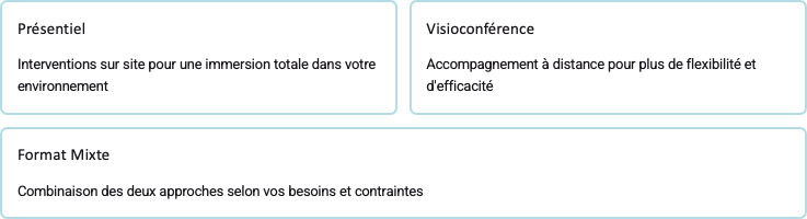 Notre approche sur-mesure allie coaching individuel, coaching d’équipe et formations certifiées pour accompagner votre transformation en profondeur. Chaque intervention est personnalisée selon votre contexte, vos défis et vos objectifs stratégiques.